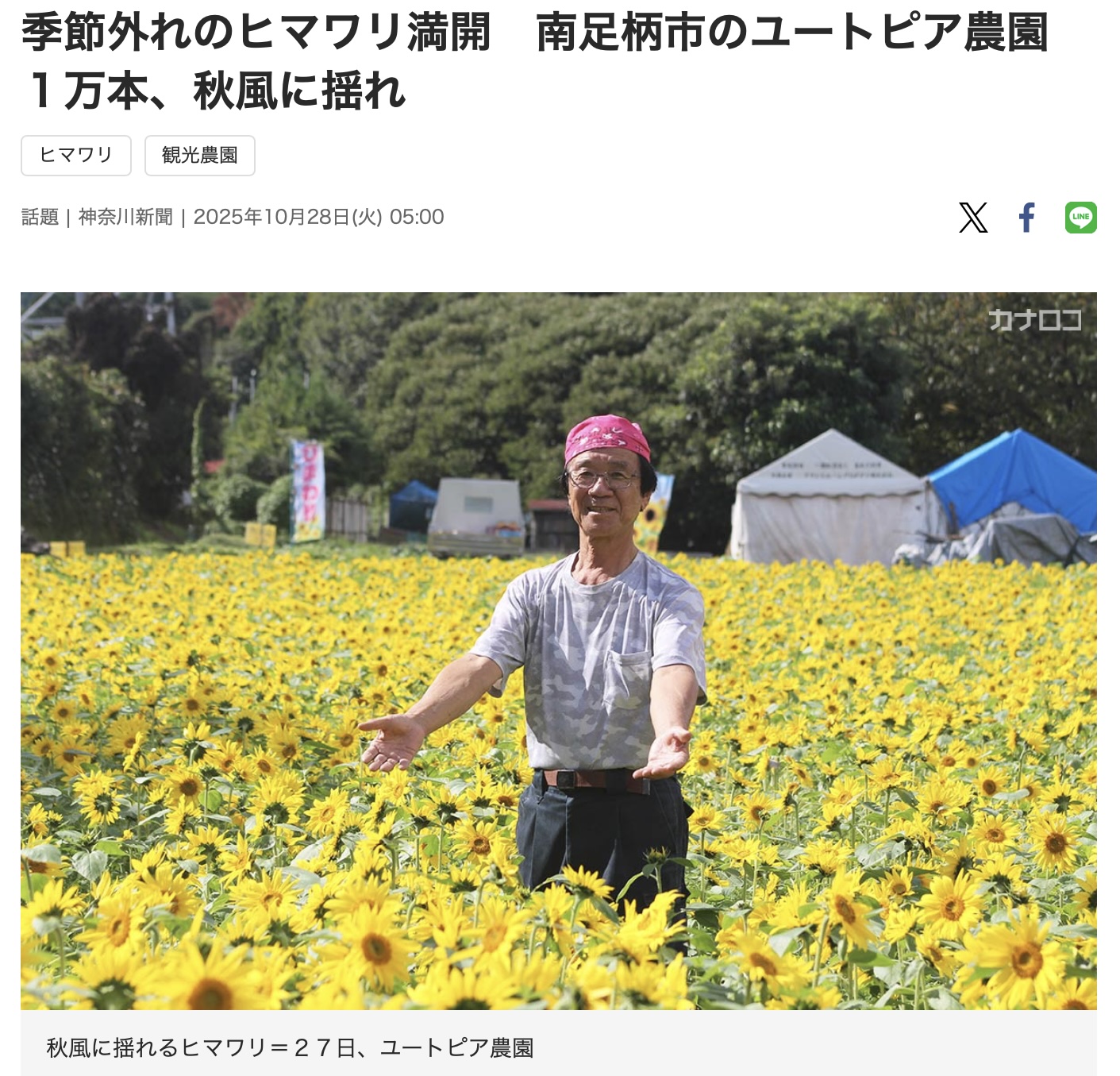 「季節外れのヒマワリ満開」神奈川新聞(カナロコ)