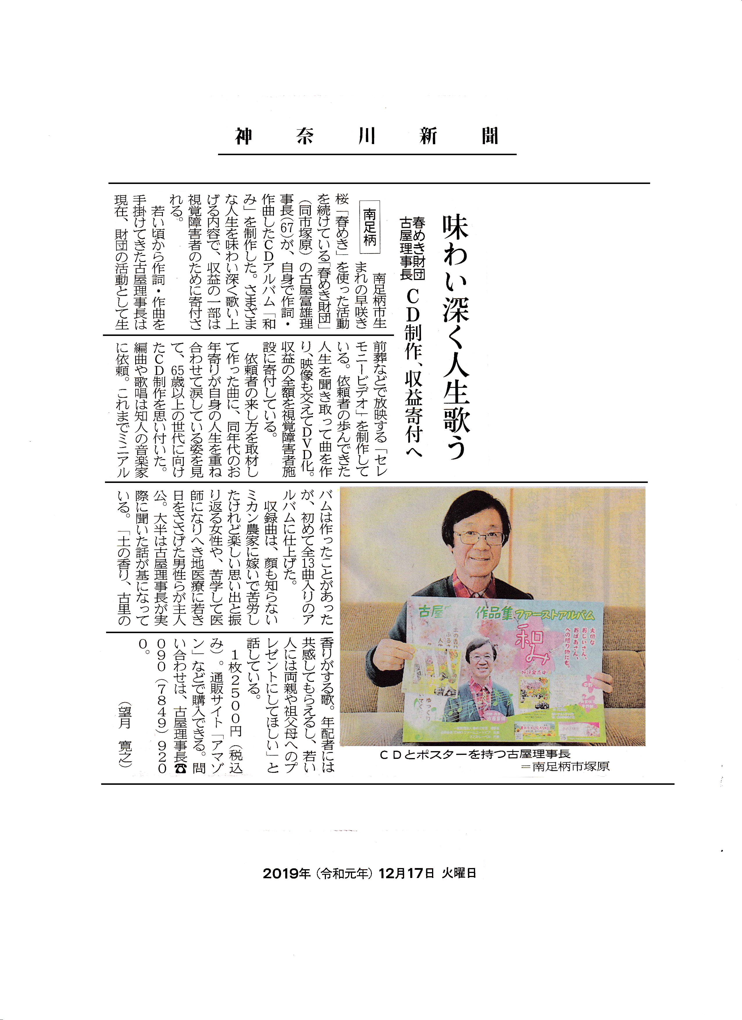 そこで当財団理事長・古屋富雄もオリジナルCMソングで「春めきの香り」を応援しようとオリジナルソングを作りました♪★