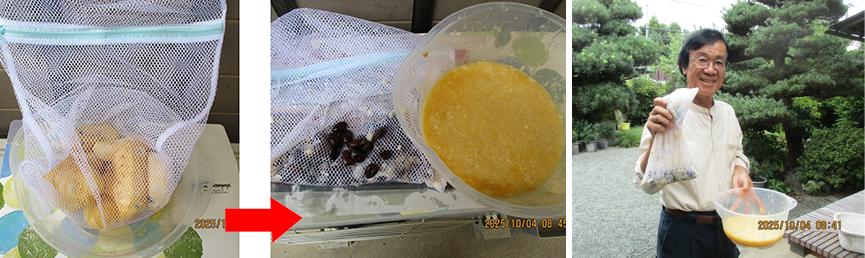 みかんネットは網目が細かいため、裏ごしの状態に。